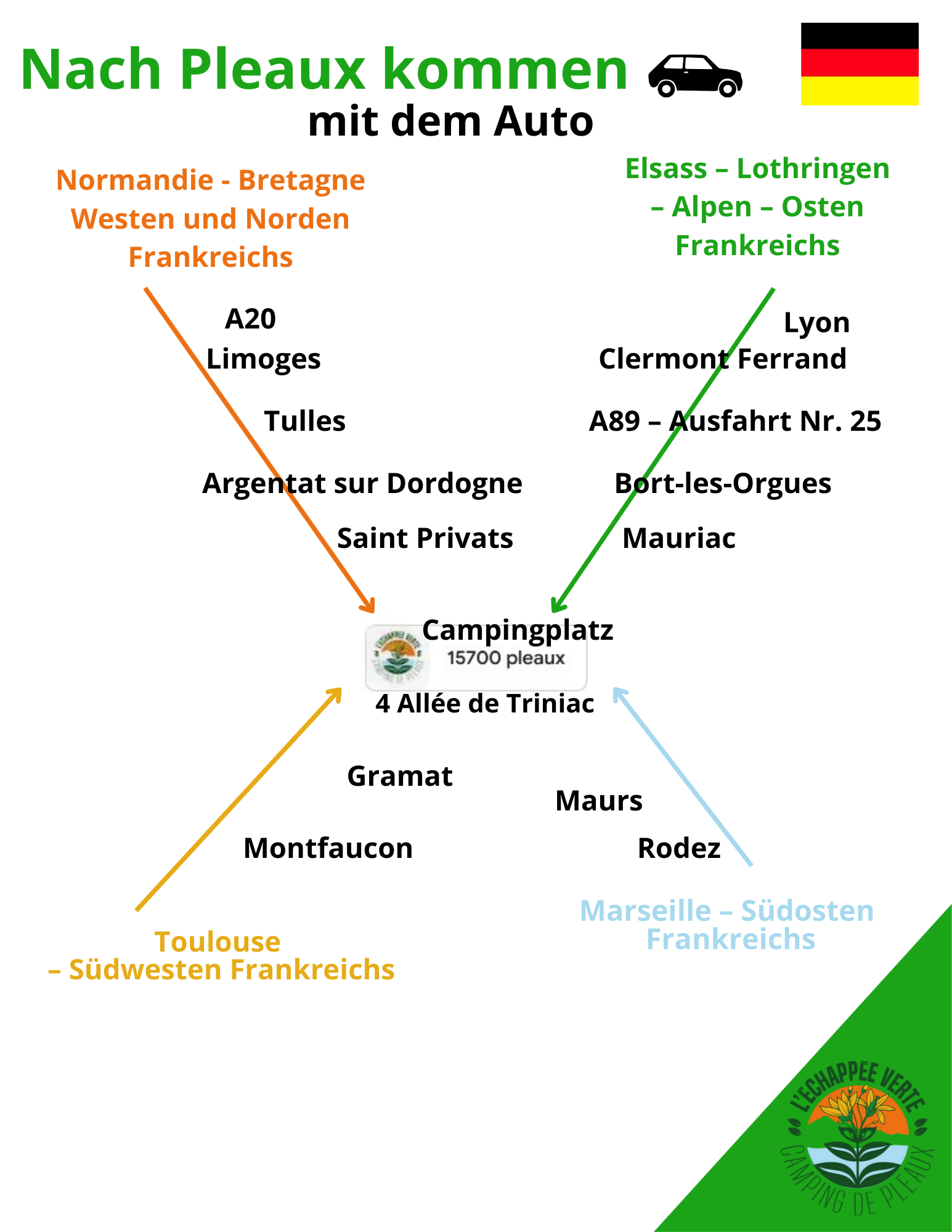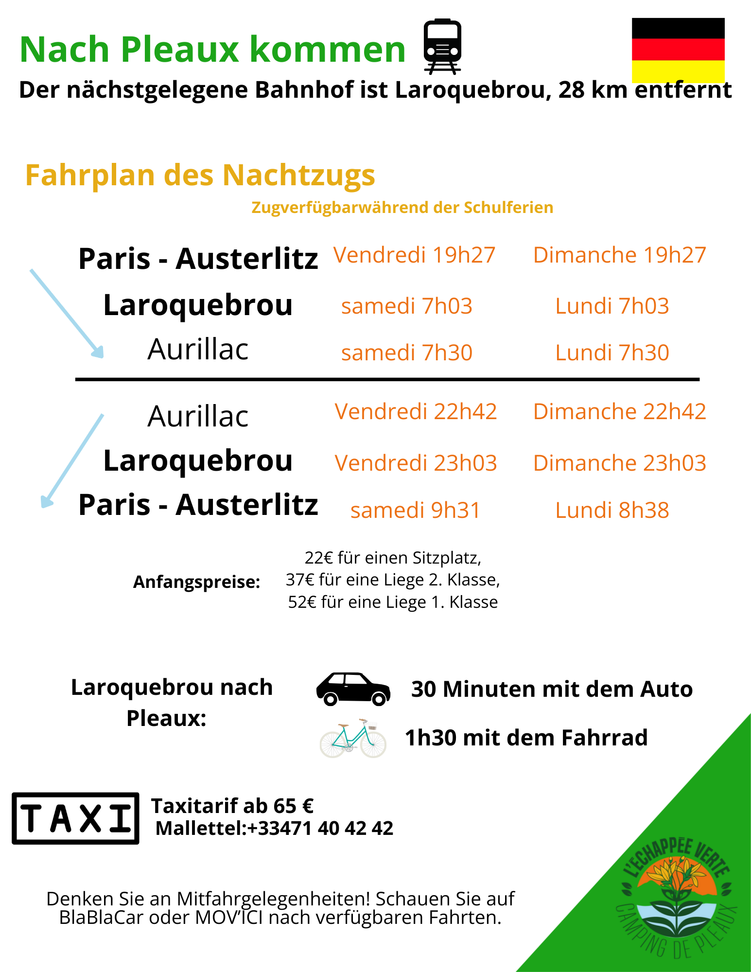 Ob mit dem Auto, dem Zug oder dem Fahrrad – entdecken Sie die besten Möglichkeiten, um nach Pleaux zu gelangen und Ihren Aufenthalt in L’Échappée Verte zu genießen.